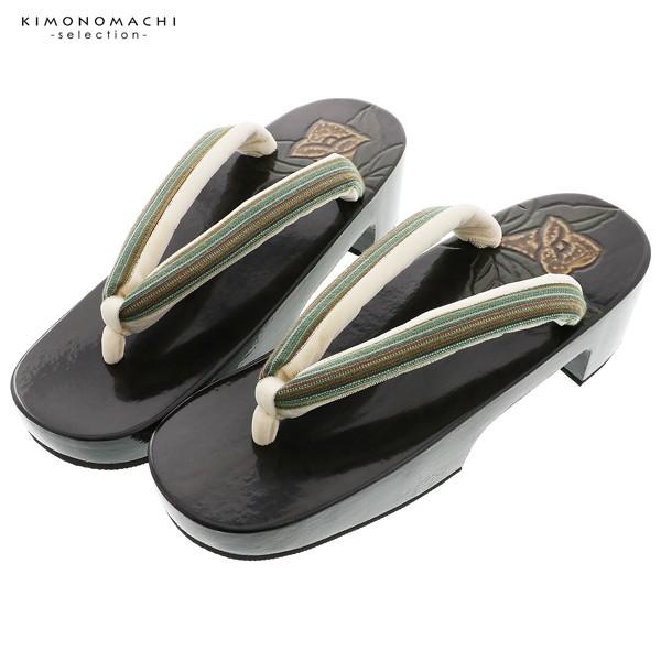 下駄 レディース 高右近 鎌倉彫 カラー 緑縞 女性下駄単品 痛くなりにくい 日本製 鎌倉彫 H メール便不可 Chaleang Go Th